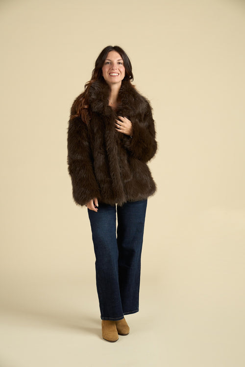 Giacca in Ecopelliccia Lussuosa Marrone Scuro - Calore e Stile Ecologico